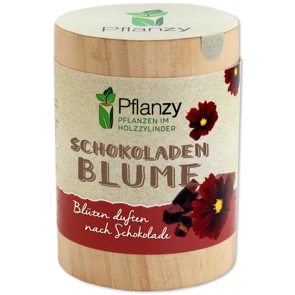 Feel Green Pflanzy Schokoladenblume, Nachhaltige Geschenkidee (100% Eco Friendly), Grow Your Own/Anzuchtset, Pflanzen im Holzzylinder, Made in Austria, Holz